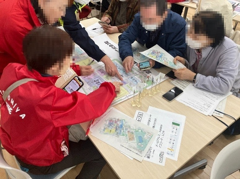 参加者は8グループ(各6名程度)に分かれ、N-HOPSに表示されるガイドに沿って、避難所の開錠、施設点検、受付設営、利用スペースの整備など、一連の開設手順を図上で実施。操作説明は最小限でしたが、参加者はすぐにアプリ操作に慣れ、グループごとに主体的に作業を進めていました。