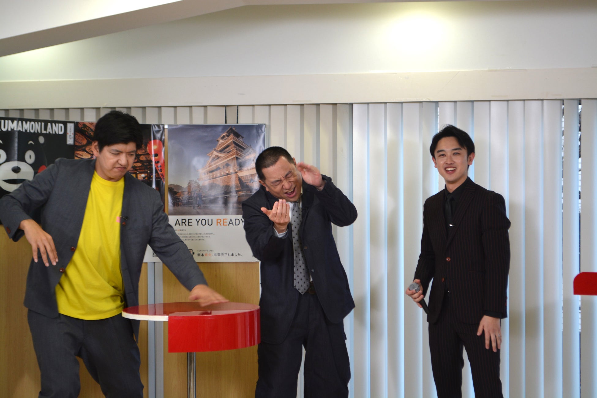 「熊本が必ずかつけえ、見とってください!対決の勝負服はくまモンのネクタイとシャツ。気合十分で臨みます!」