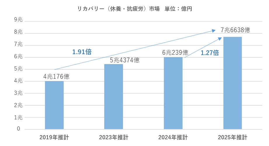 ■リカバリー(休養・抗疲労)市場2025年は7.6兆円と推計