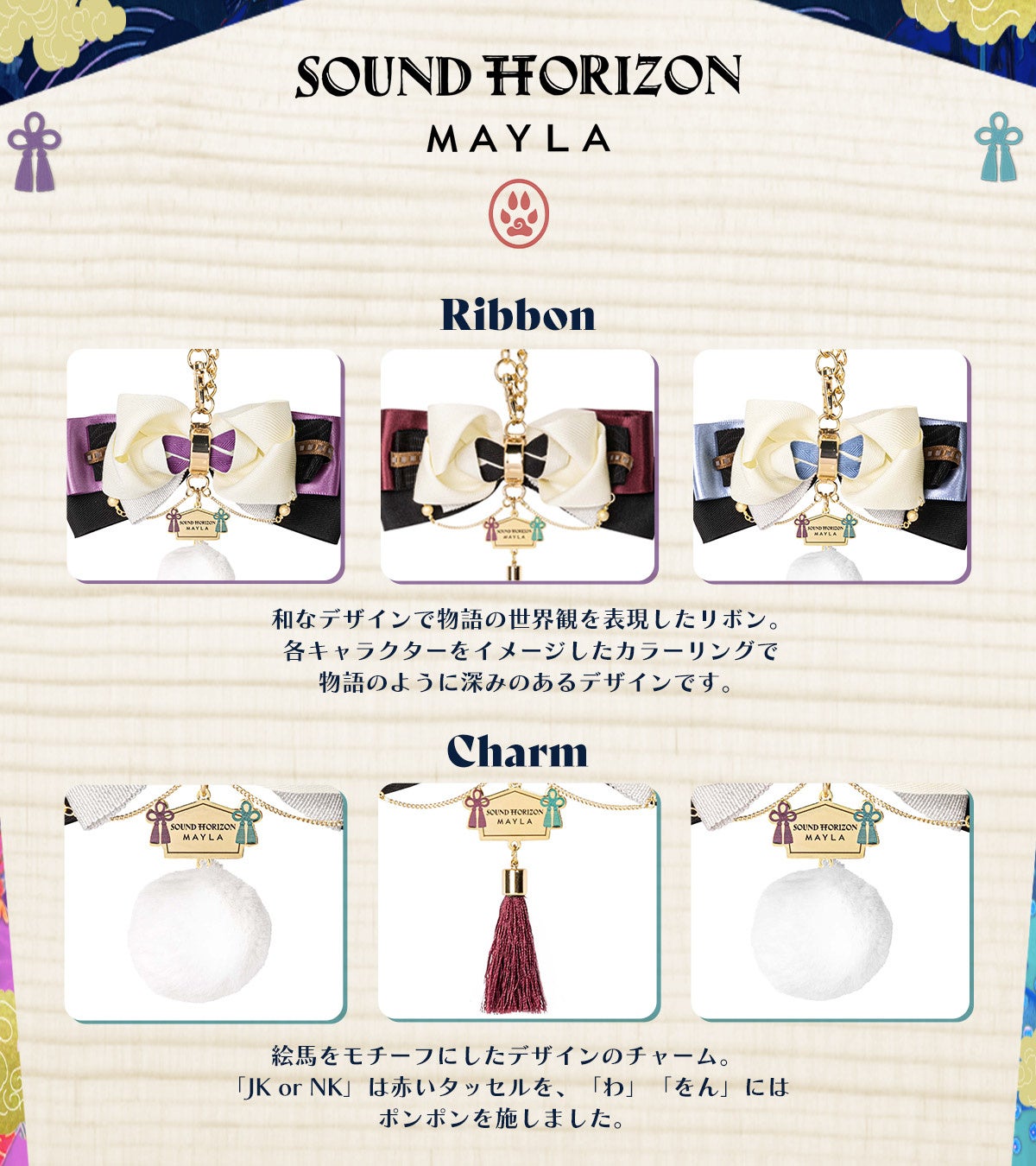 Sound Horizon「絵馬に願ひを!」の世界観をイメージしたチャームで、JK or NK、わ、をんの3カラーに加え、「Revo」モデルを含む此度の結末セットをご用意しました。エレガントで美しいこだわりの一品をぜひお楽しみください。