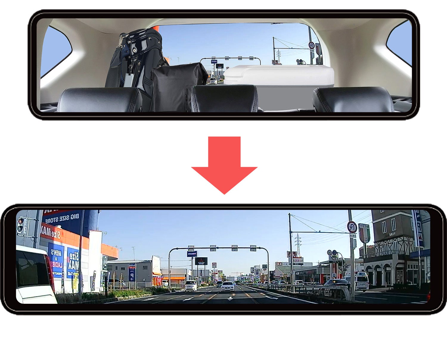 上下反転機能&鏡像/正像切替機能搭載で、リアカメラを上下逆さまにして設置することも可能です。