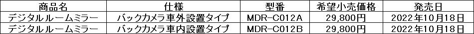 バックカメラ車内設置タイプ 型番:MDR-C012B
