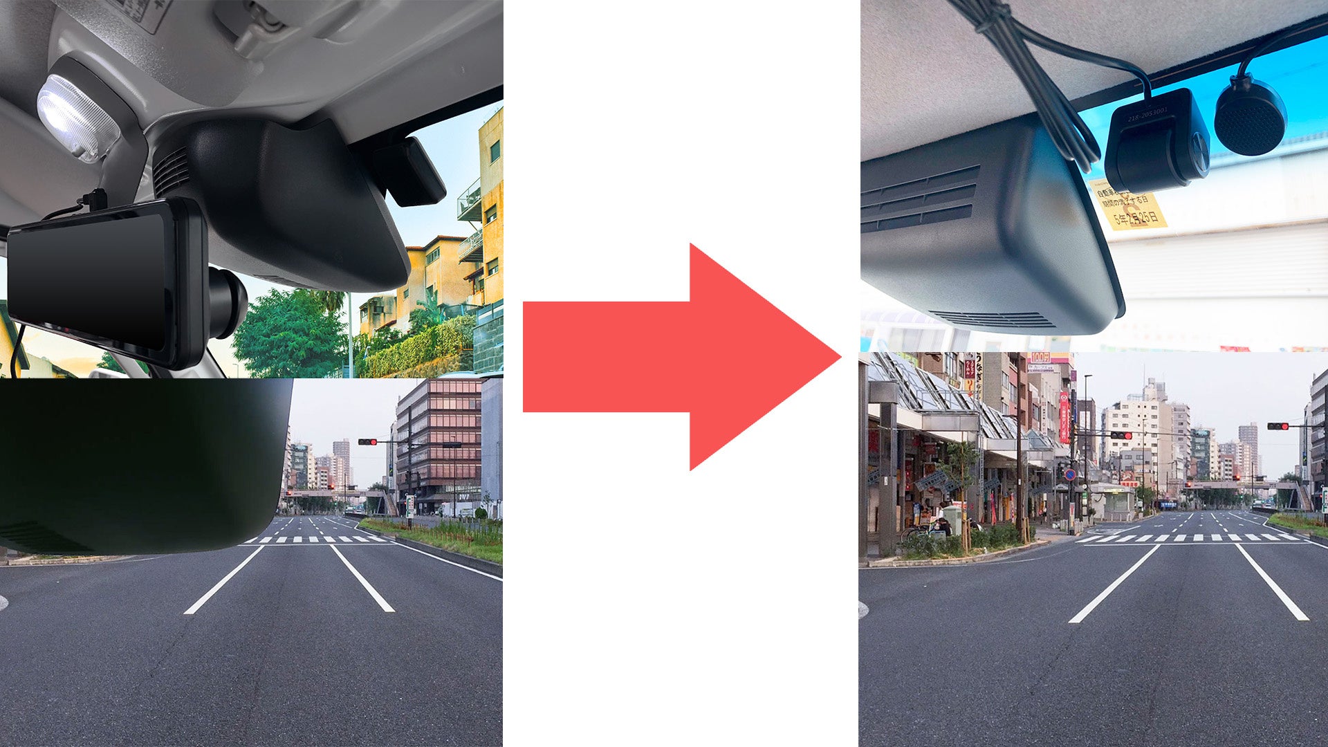 フロントカメラは分離式でミラーの向きに影響を受けず視界の妨げにならない取付けが可能です。カメラはフロントガラスに直接貼り付けますので、事故の衝撃でミラー本体がズレても問題無く記録できます。