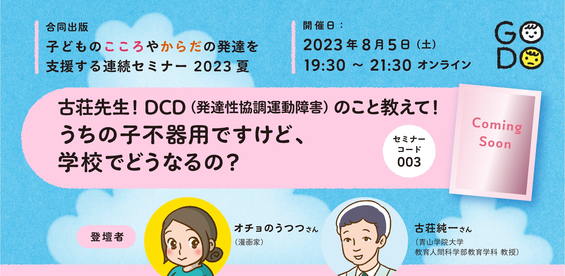 セミナーコード003「古荘先生!DCD(発達性協調運動障害)のこと教えて!うちの子不器用ですけど、学校でどうなるの?」