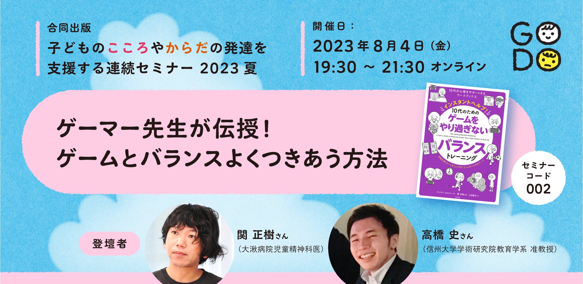 監修の大淑病院児童精神科医の関正樹先生と、ゲストに公認心理師の高橋史先生をお迎えし、この本の使い方やおすすめのポイント、日常生活とゲームを上手にコントロールする方法をお話いただきます。