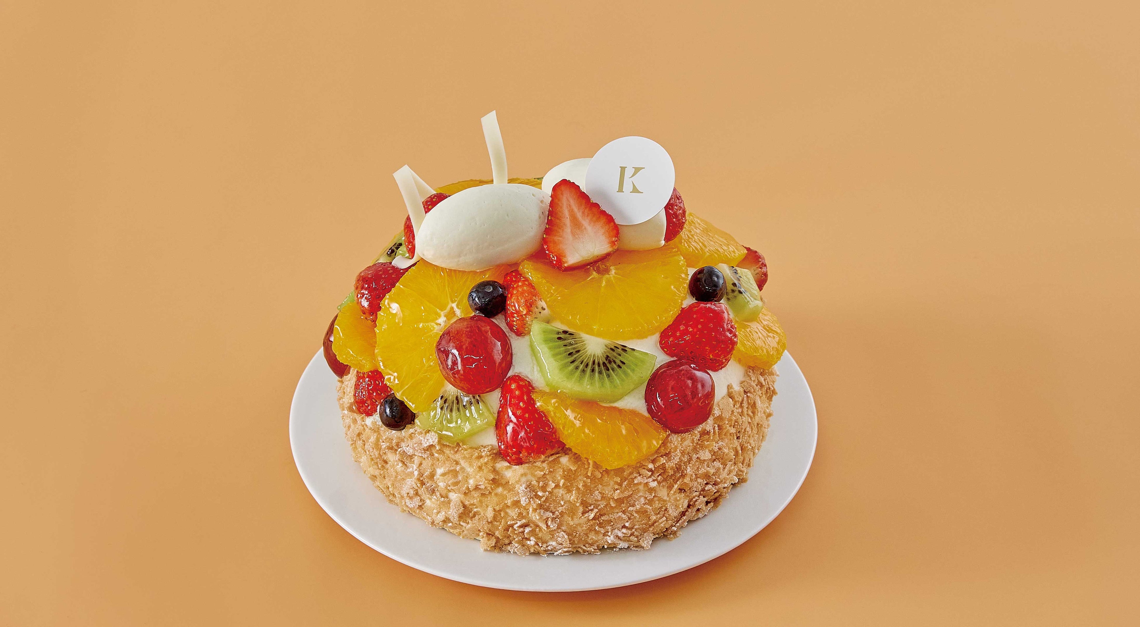 中にもたっぷりのフルーツが入っているので、カットをする時のワクワク感もお楽しみいただける、カラフルで華やかなケーキです。