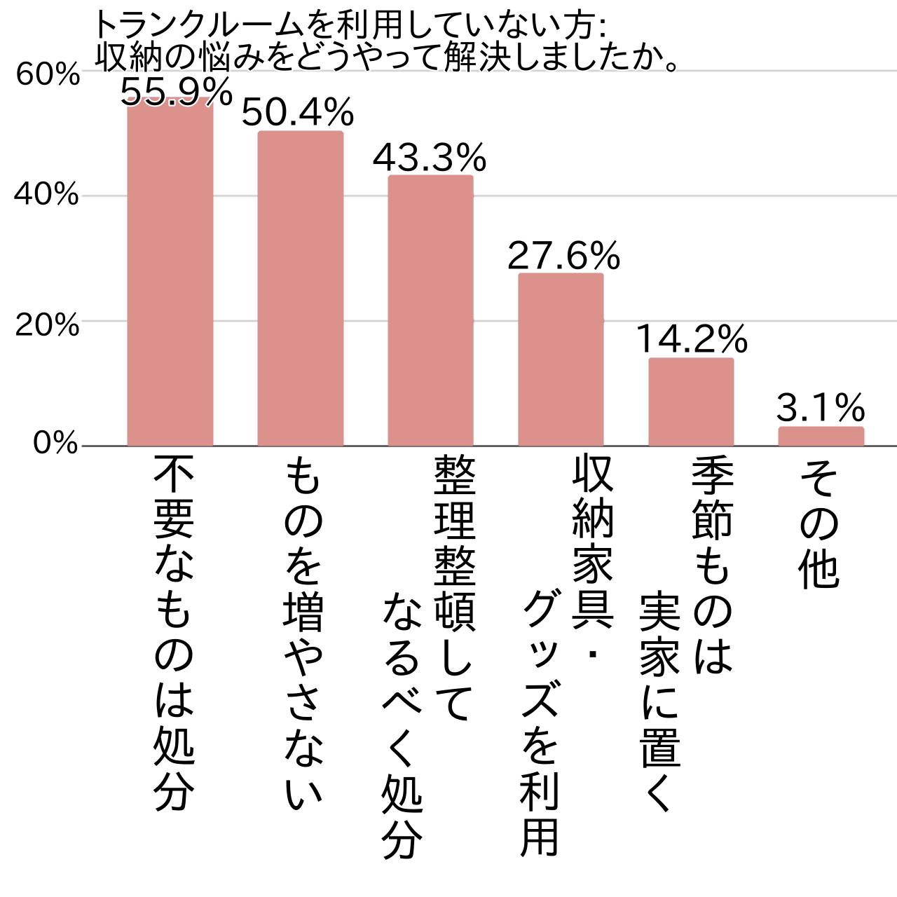 アンケートではトランクルームを利用していない方に、収納悩みをどう解決したかを尋ねてみました。