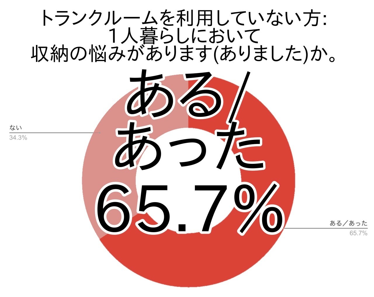 そこで、アンケートでは次に、トランクルームを利用していない方に、1人暮らしにおいて収納の悩みがある(あった)かどうかを尋ねてみました。