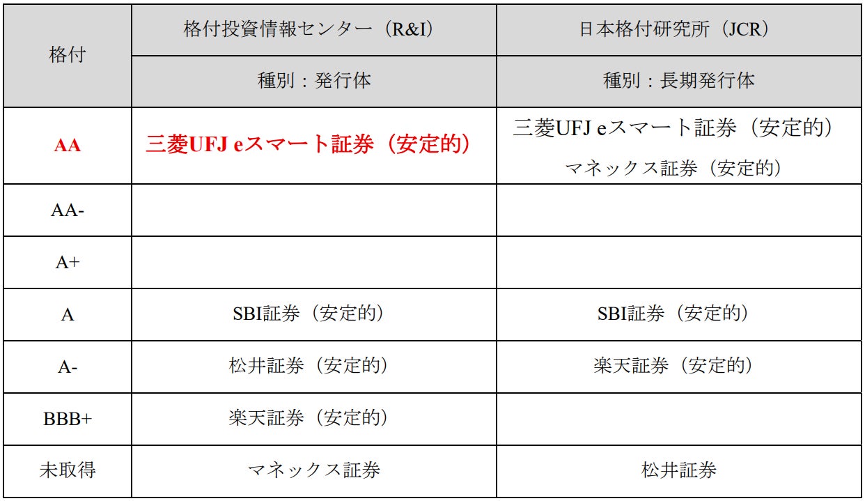 R&Iが三菱UFJ eスマート証券の発行体格付「AA」・短期格付「a-1+」を据え置き ~いずれも主要ネット証券会社最上位を維持 ~