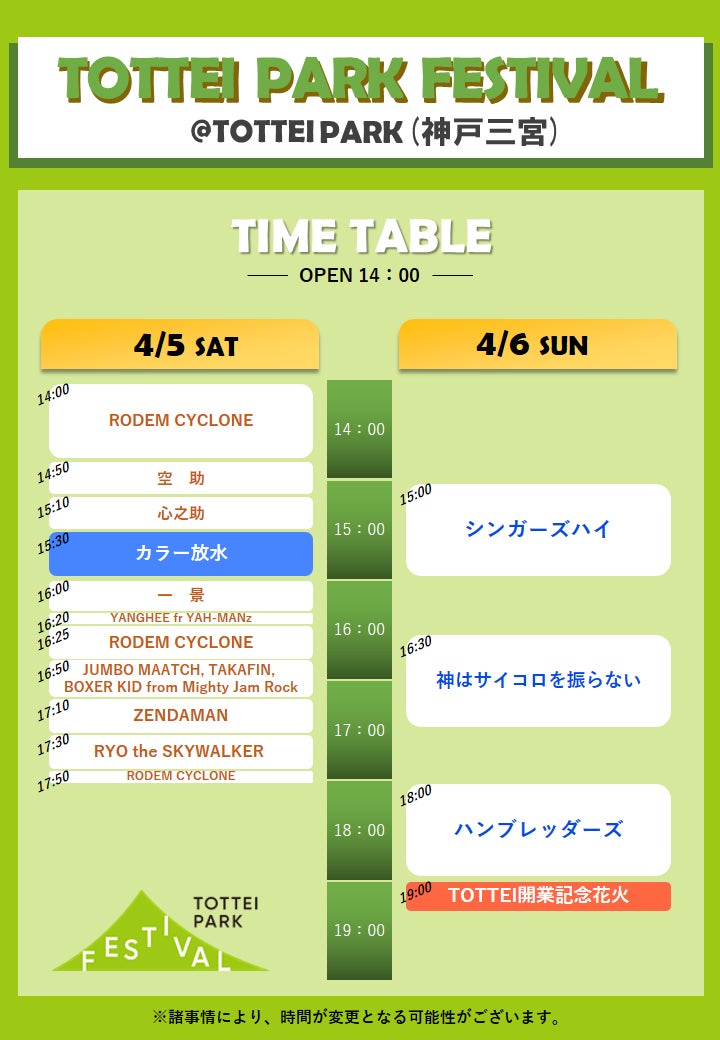 いよいよ今週末に開催!4月5日(土)&6(日)こけらイベント「TOTTEI PARK FESTIVAL」タイムスケジュールを公開!