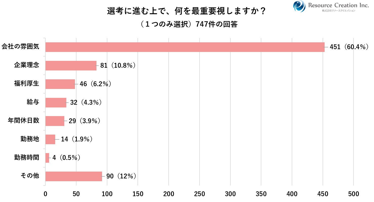 1.選考に進む上で最も重要視するのは「会社の雰囲気」