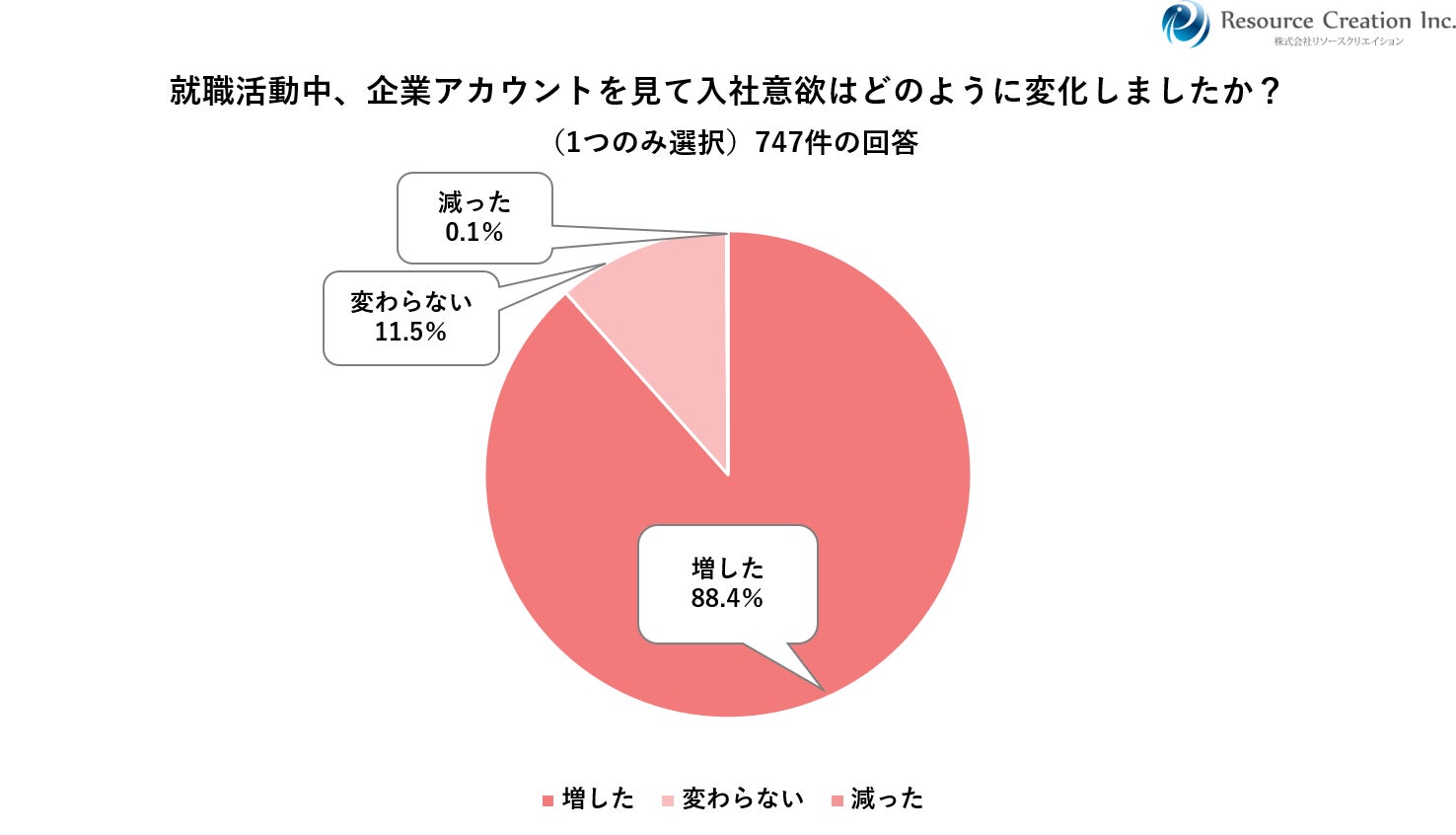 【26卒の就活生747名に調査】約9割が企業アカウントをみて入社意欲が増したと回答