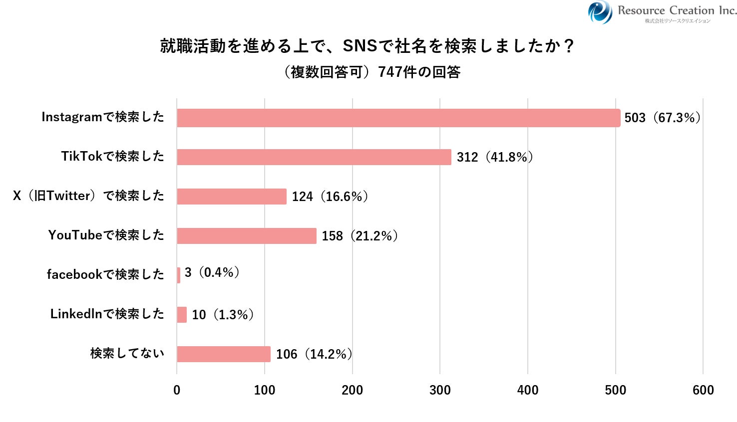 SNS採用マーケティング「エアリク」を運営する、株式会社リソースクリエイション(本社:東京都港区、代表取締役:髙田 桂太郎 以下 当社)は、就職活動中の学生747名を対象に、「26卒におけるSNS就活についての実態調査」(以下 本調査)を実施しました。