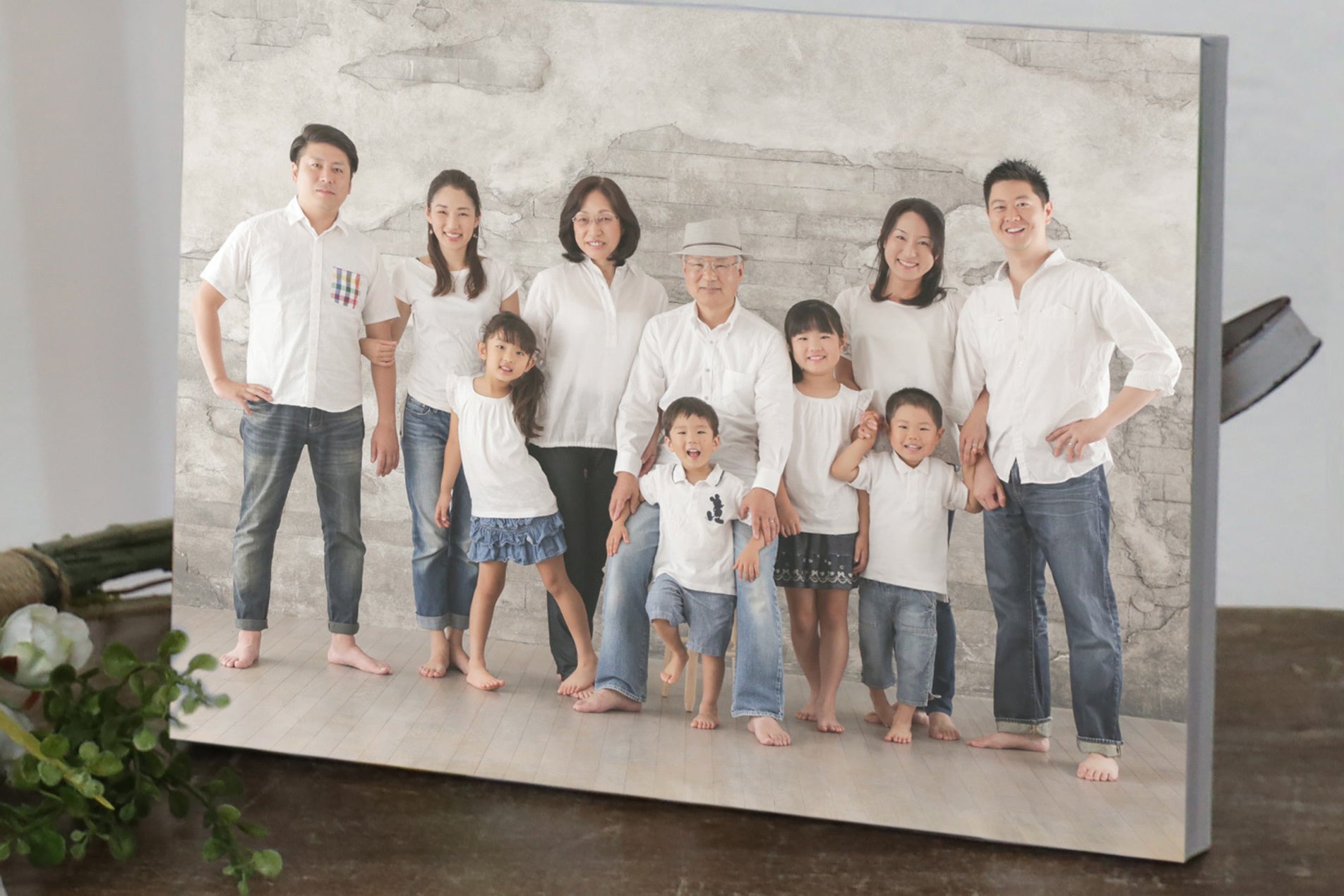 3世代ご一緒に撮影されたご家族に「A3パネル」を1つプレゼント。A3サイズの大きく見やすい写真に、らかんスタジオで過ごした楽しい思い出も一緒に込めて、おじいちゃん、おばあちゃんへのプレゼントにおすすめです。