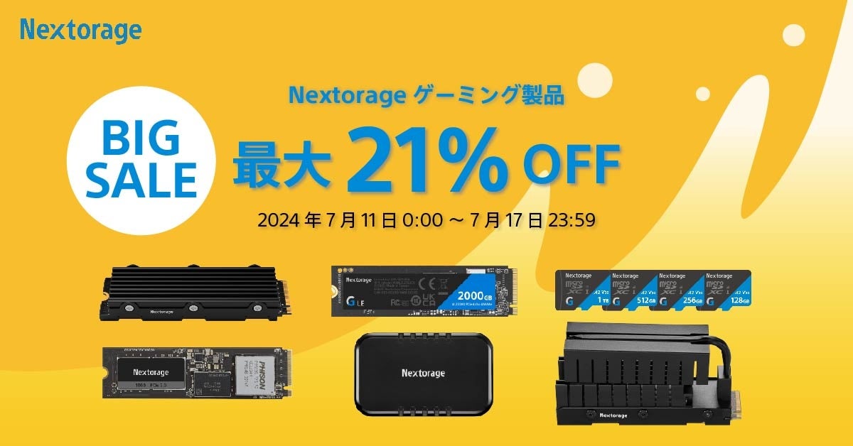 Nextorage株式会社(ネクストレージ株式会社、代表取締役:本多 克行、神奈川県川崎市)は、Amazonで7月11日(木)0:00から7月16日(火)23:59にかけて開催される「Amazon プライムデー 先行セール」、7月16日(火)0:00から7月17日(水)23:59にかけて開催される「Amazon プライムデー」に参加することをお知らせいたします。