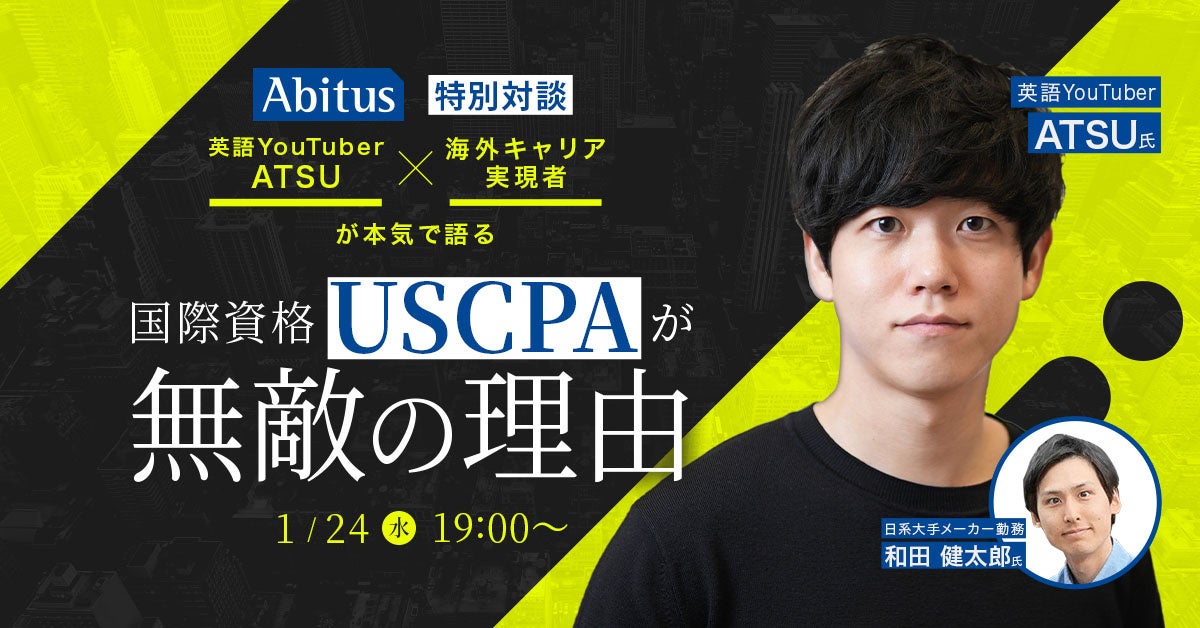【特別対談】英語YouTuber ATSU×海外キャリア実現者が本気で語る、国際資格「USCPA」が無敵の理由|1月24日(水)開催、無料ウェビナー