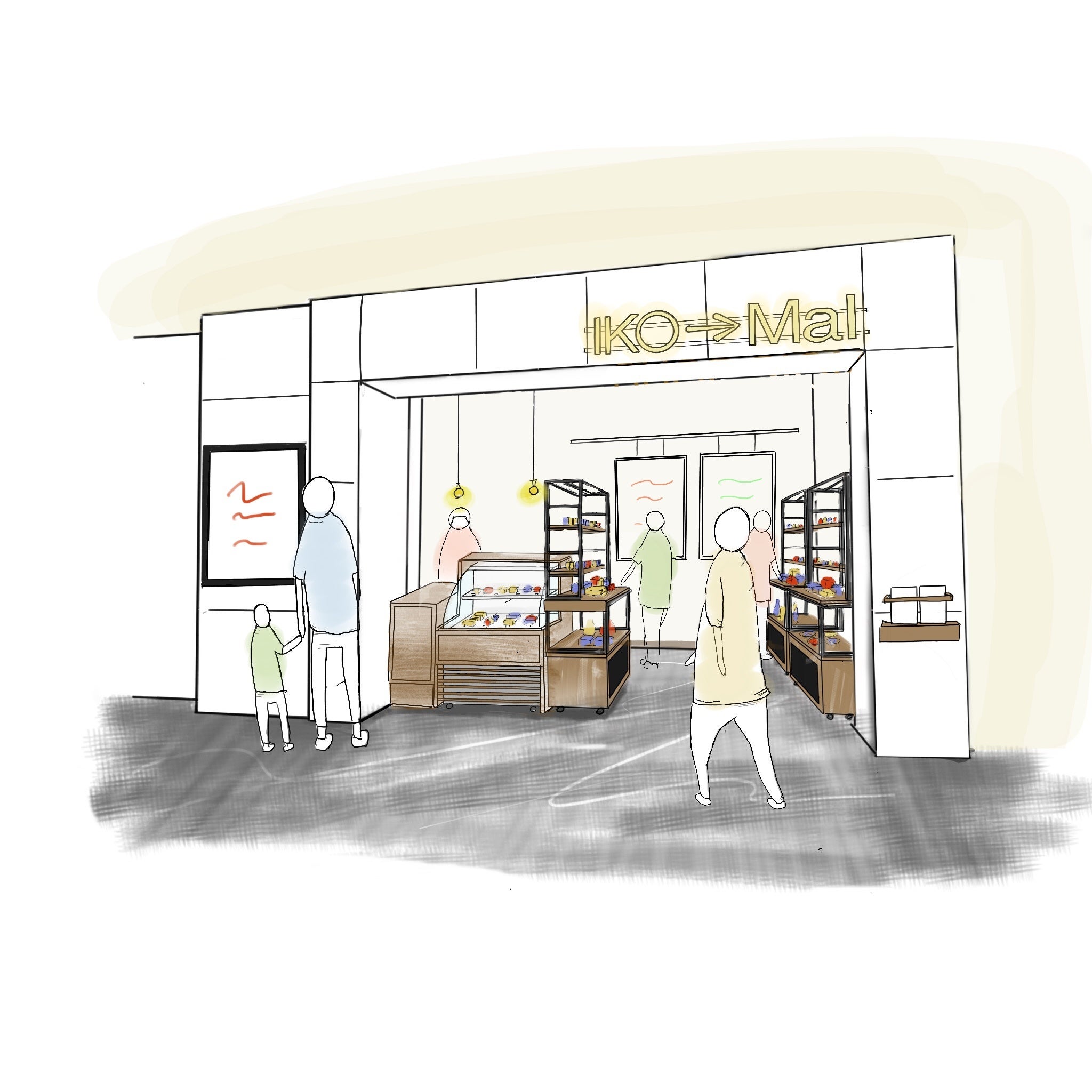 コンセプトには、出店している「マチ(M)」と訪れる皆さん「わたし(I)」をつなぐ場所になってほしいという想いを込めました。東海エリアで使われている「行こうよ」の方言でもある「いこまい!」を用い、お店に立ち寄ることが縁となり、出店している地域に「いこまい!」となるような店舗を目指します。また、店舗名称「IKO→MaI」にはコンセプトを反映するとともに、矢印をIKOとMaIの間に入れることで実際に各エリアへ足を運んでもらうきっかけとなる店舗を表現しています。