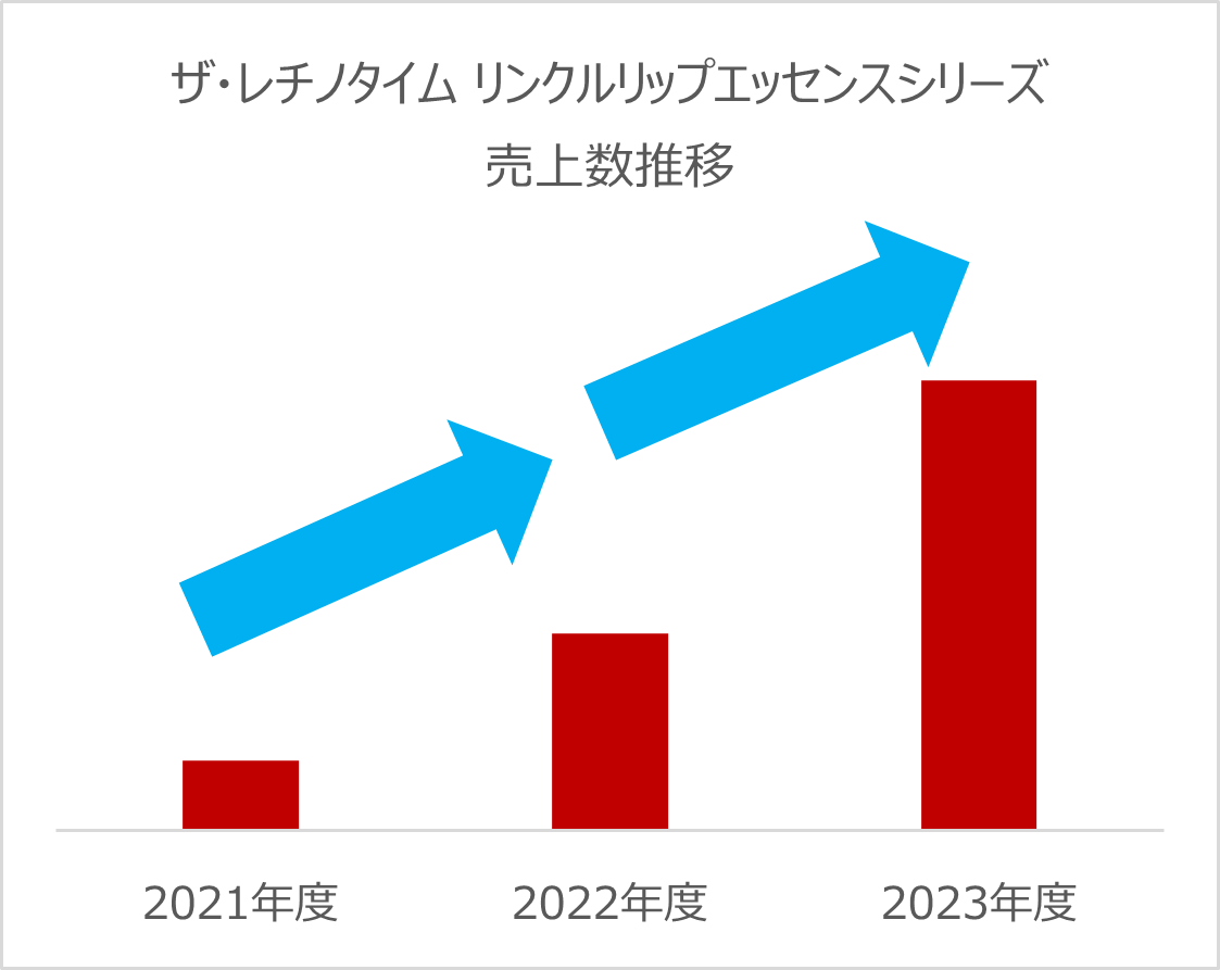 2020年11月発売の「ザ・レチノタイム リンクルリップエッセンス」と2023年9月に数量限定発売した「ザ・レチノタイム リンクルリップエッセンス プランパー ヌーディピンク」は、唇用美容液として2年連続で200%以上伸長し、2024年6月末までに累計販売個数が60万個を超える、大人気アイテムとして成長を続けています。今回発売の「ザ・レチノタイム リンクルリップエッセンス プランパー シアーレッド」は、どなたにも似合う透け感のある赤が特徴。厚い美容液層が乾燥した唇をコーティングしてぽってり唇※1を叶えます。