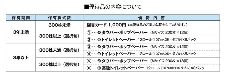 ・期限までにお申込がない場合には、保有期間と保有株式数に応じて「タウパー・ポップペーパ
