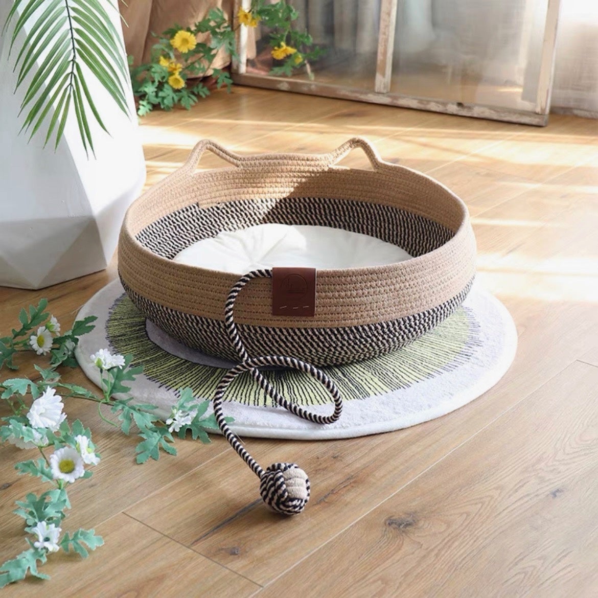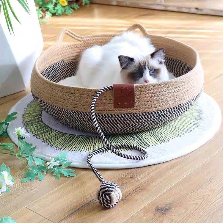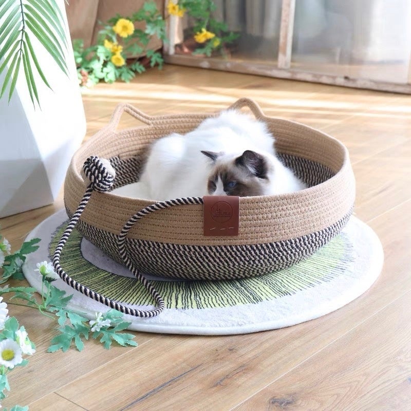 さりげない猫耳がキュートな天然素材のペット用バスケットです。