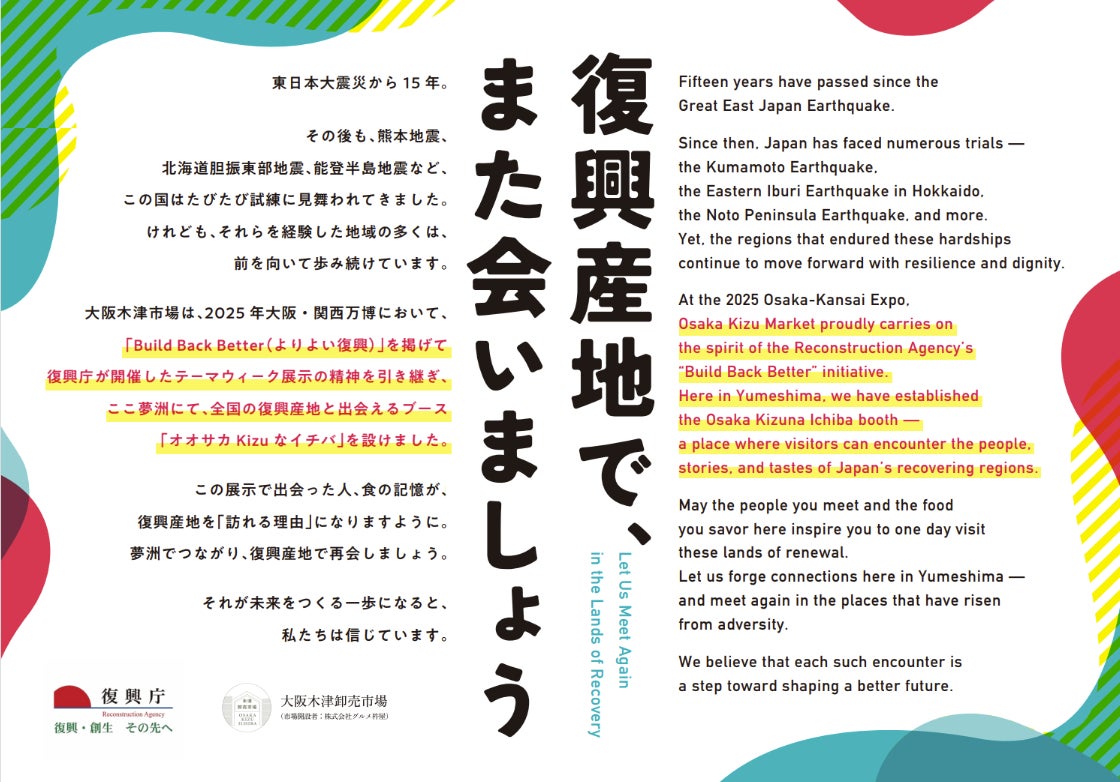 株式会社グルメ杵屋が大阪・関西万博にて『オオサカKizuなイチバ』(後援:復興庁)を開催!
