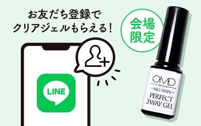 OMD公式LINEのお友だち登録で、大人気のクリアジェル「パーフェクト3WAYジェル 4mL(非売品)」を会場限定でプレゼント!