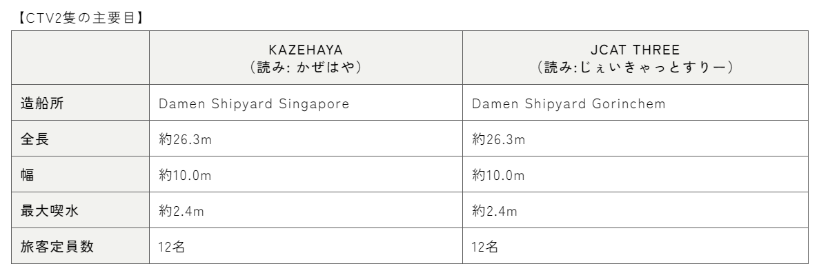 2隻について、当社グループの株式会社商船三井内航(社長:小林 洋、本社:東京都港区)がCTVの運航を行い、2023年6月から、本事業の建設用途、洋上風車と陸上の作業員の輸送業務に従事します。当社グループでは通常外航船に適用される国際的な船舶安全管理システムを、内航船であるCTVにおいても適用する事で、より質の高いCTVサービスを今後国内各地で建設される洋上風力発電所向けに提供してまいります。