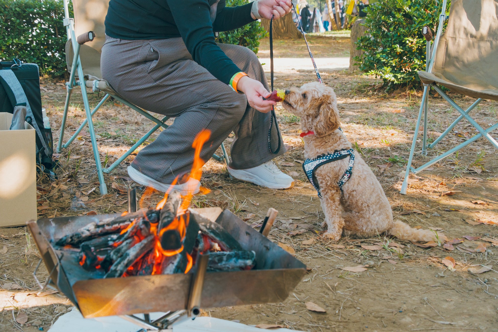 特別な体験が楽しめる有料休憩エリアでは、愛犬と一緒にゆったりと焚き火を囲みながら、香ばしい焼き芋を味わう来場者の姿があちこちで見られました。温かな炎とほくほくの焼き芋に笑顔が広がり、愛犬も飼い主と寄り添ってくつろぐ様子がとても印象的でした。