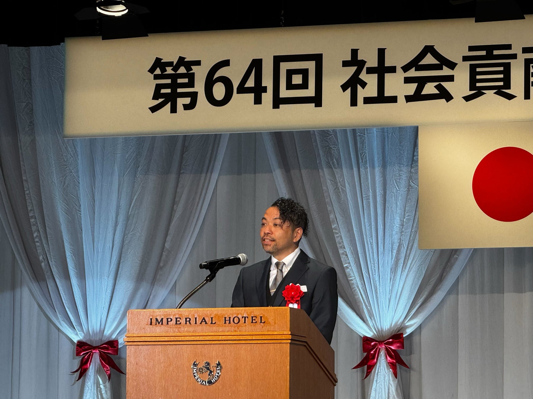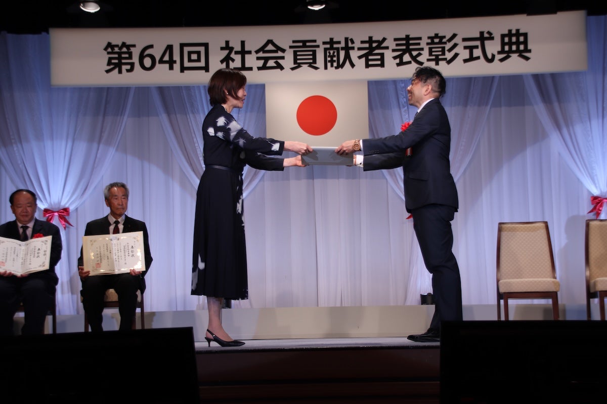 2025年12月1日に東京・帝国ホテルにて開催された式典に参加し、厳かで温かな中、社会貢献支援財団会長の安倍昭恵様より表彰状を授与しました。