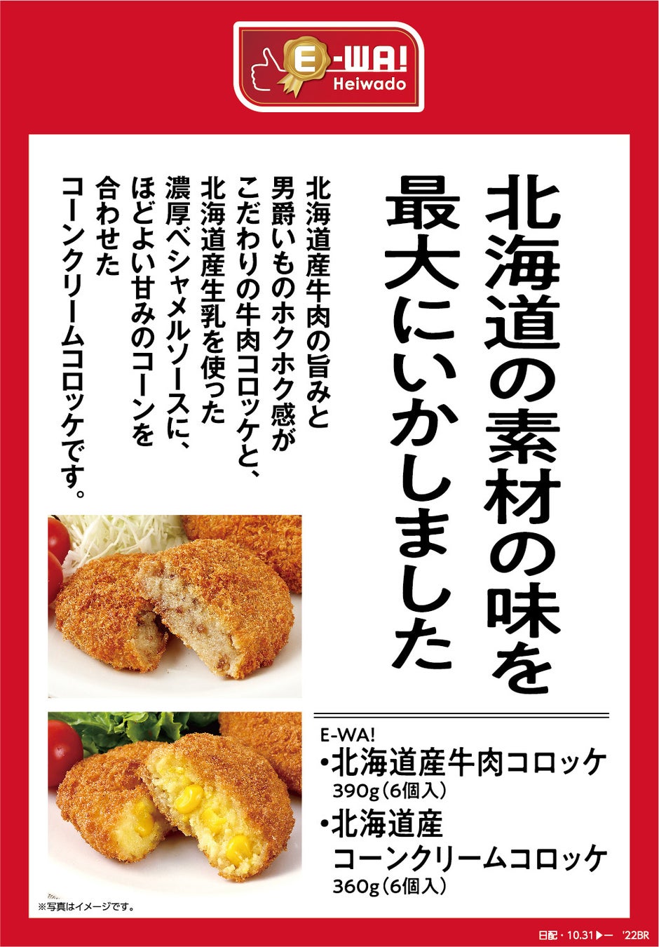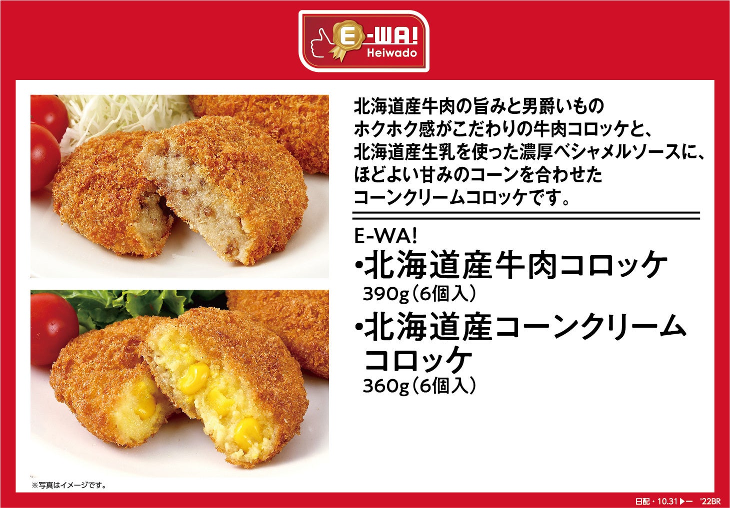【平和堂】こだわりブランドE-WA!新商品! 「北海道産牛肉コロッケ」&「北海道産コーンクリームコロッケ」
