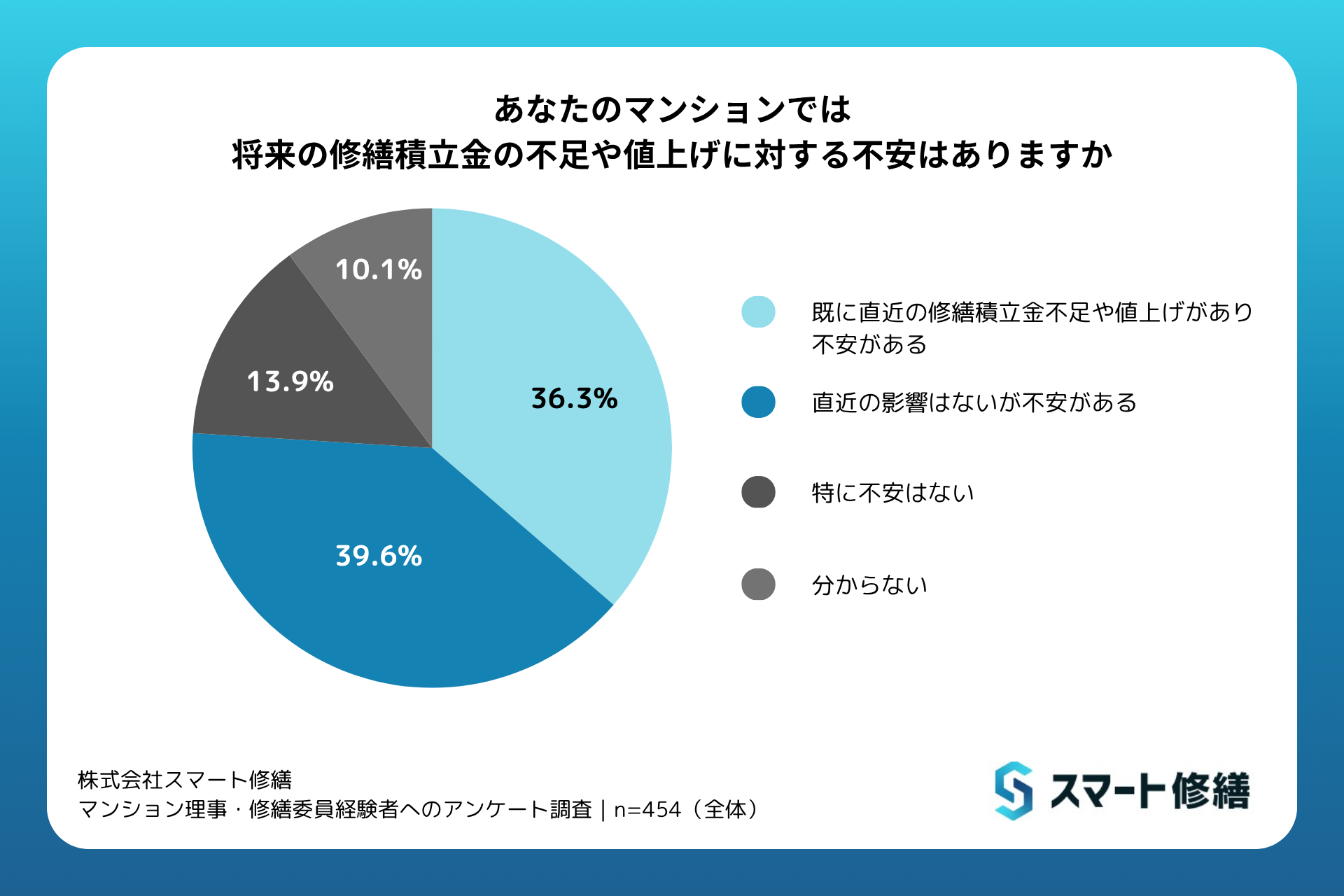 修繕積立金の不足・値上げに不安を感じている管理組合役員は75.9%。