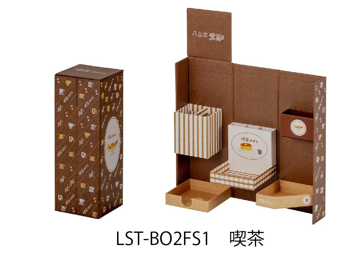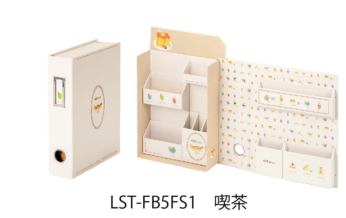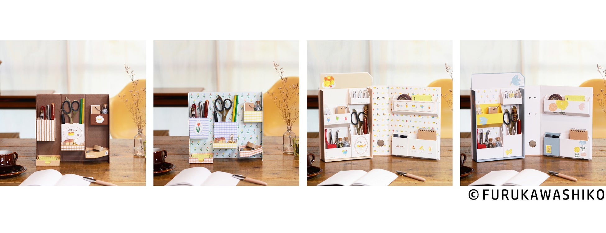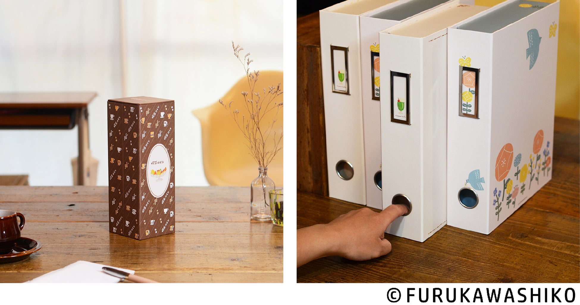 ラインアップは卓上使いに便利な「ボックス」タイプと、本棚などに収納できる「ファイル」タイプの2種類です。「ライフスタイルツール」のシンプルな形状はそのままに、喫茶や花などレトロなモチーフアートを施しました。