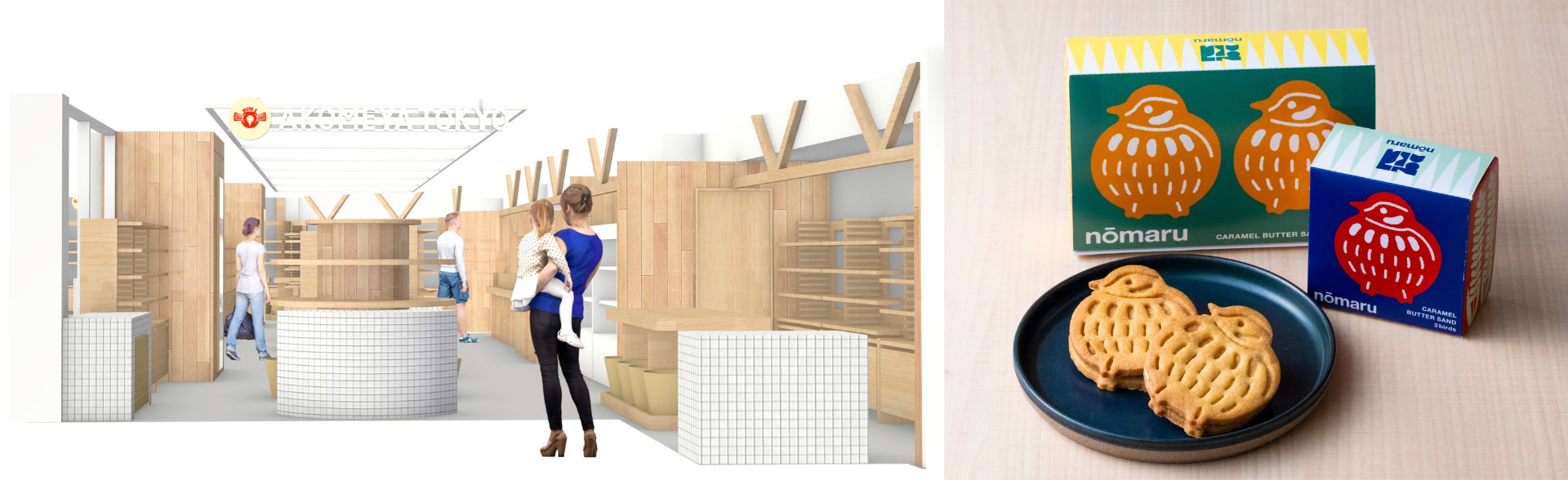 今回のオープンを記念して、今だけしか味わえない旬の農産物のおいしさを、あますことなく楽しめる、東京都三軒茶屋にあるスイーツブランド「nomaru bake(ノーマルベイク)」に協力をいただき、AKOMEYA TOKYOのシンボルでもある「福良雀」をモチーフにした「nomaru ふくらすずめバターサンド <キャラメル>」を限定数量ご用意しました。