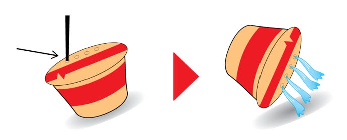 1. フタを半分まではがし、粉末スープ2種を取り出す。