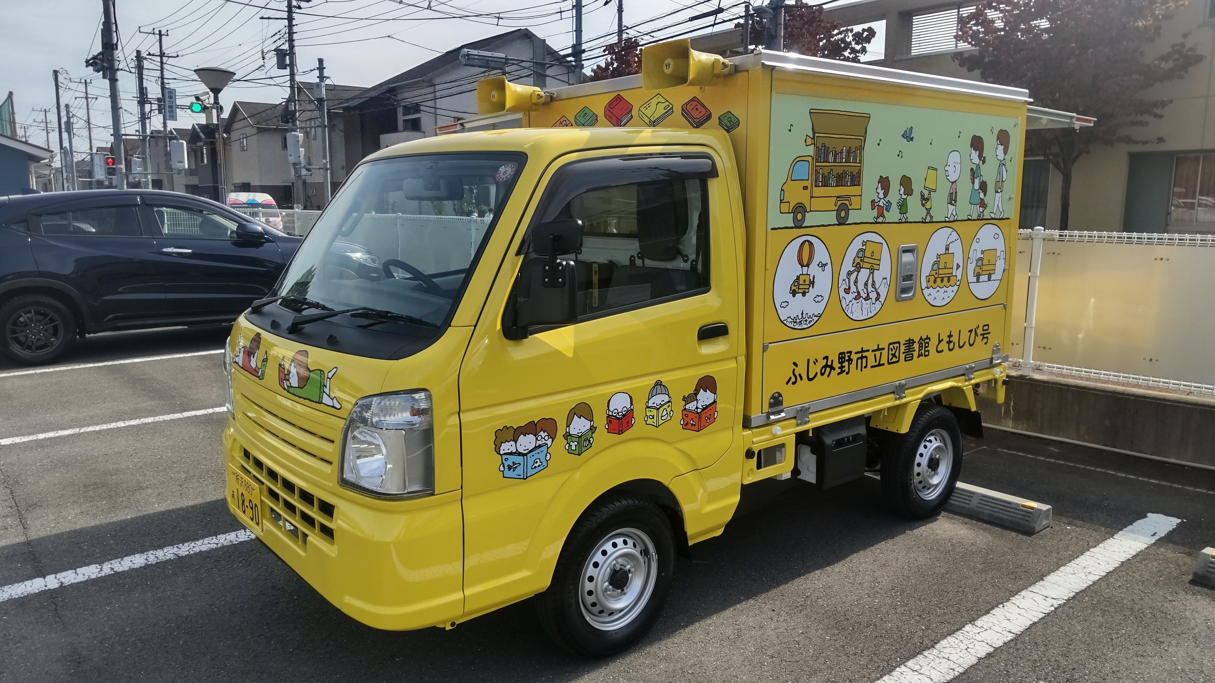 人気絵本作家ヨシタケシンスケさんのかわいいイラストが目印の新移動図書館車が市内を走ります。小学校での本の貸出しを行うほか、野外で行うイベント時にも活躍します。今年度は市内の小学校13校に12月から3月の間に各校1回巡回します。