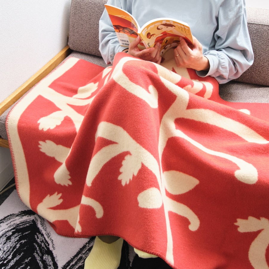 アーティストの個性あふれる作品をジャカード織りでデザイン。空間にそっと彩りを添える一枚。FAVORRICのウールブランケットは、アートを纏いながら、くつろぎの時間に彩り与えます。