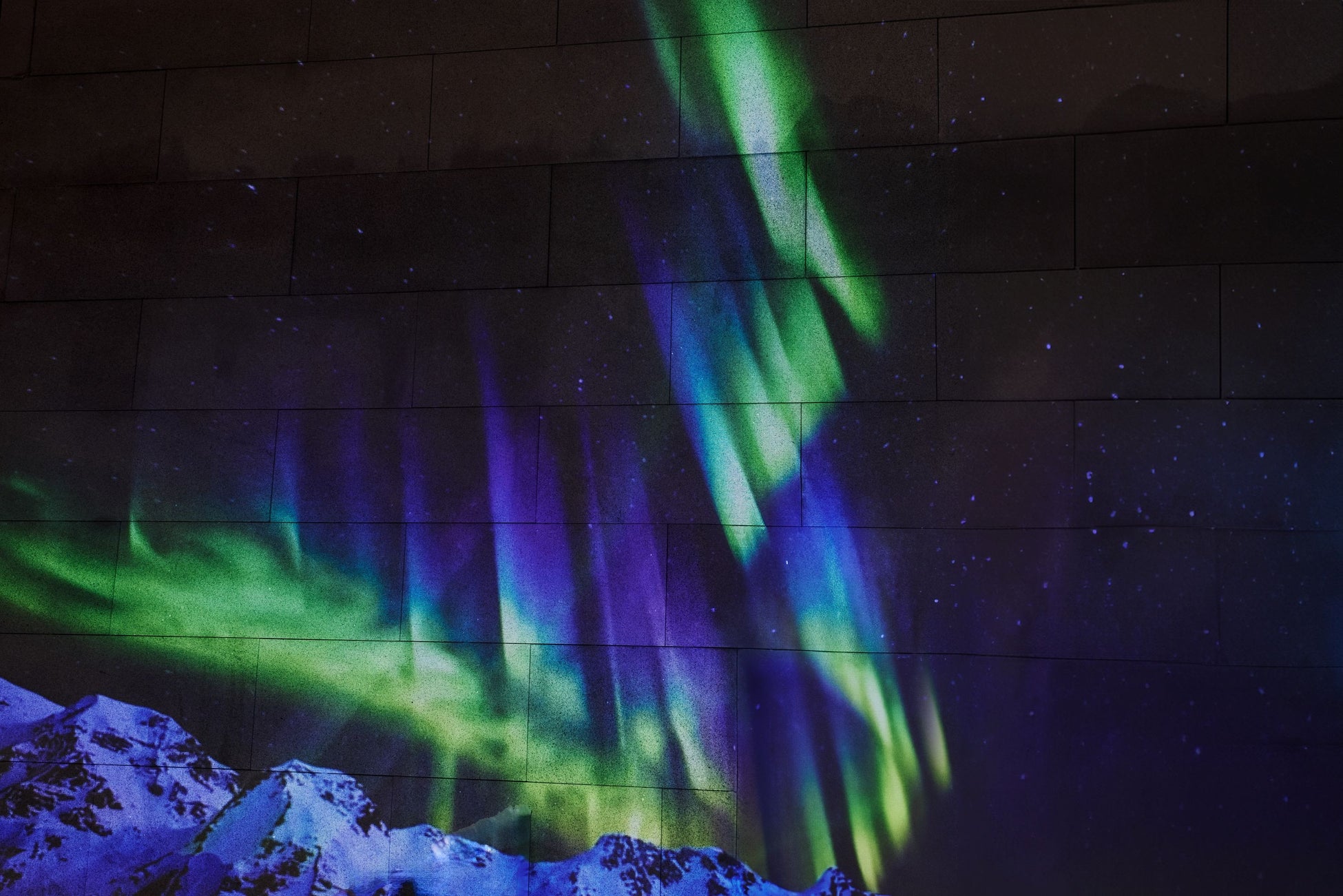 フロアを結ぶ屋外階段には、オーロラを想起させる柔らかな光が差し込み、ゲストを次のゾーンへ静かに誘いました。繊細に移ろう色彩は、ヘリテージから再解釈へとつながる「進化」のテーマを映し出し、空間と空間の間に穏やかな余韻をもたらします。シンプルでありながら印象的な演出は、体験全体の中で静かなハイライトとなりました。