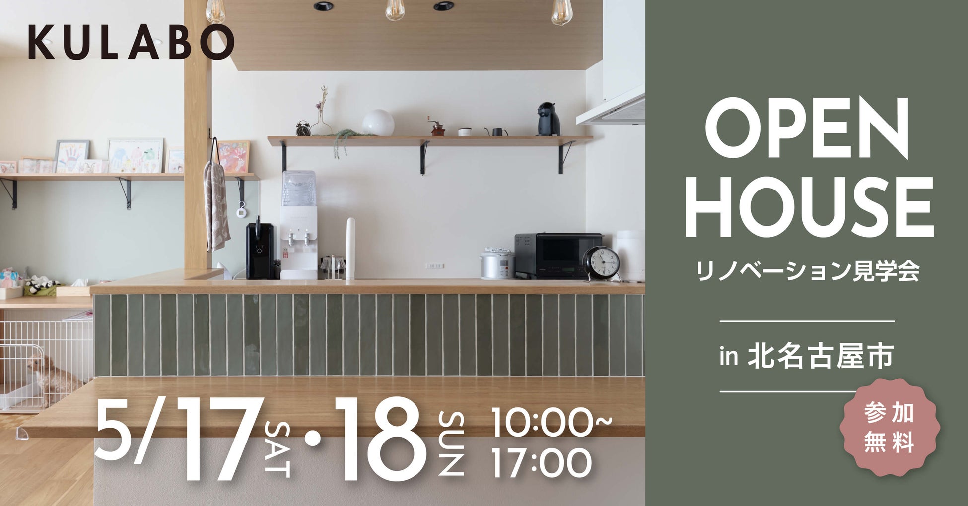 愛知県でリノベーション事業を展開する株式会社sumarch(本社:愛知県名古屋市中村区、代表取締役:鳥居儀彰、以下KULABO)は、マンションリノベーション見学会を2025年5月17日(土)・18日(日)、愛知県北名古屋市にて開催いたします。