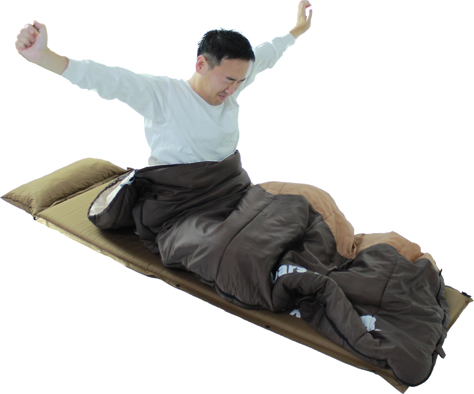 寝袋としては横幅がかなり広めで圧迫感がなく、布団のようにゆったりと眠れます。