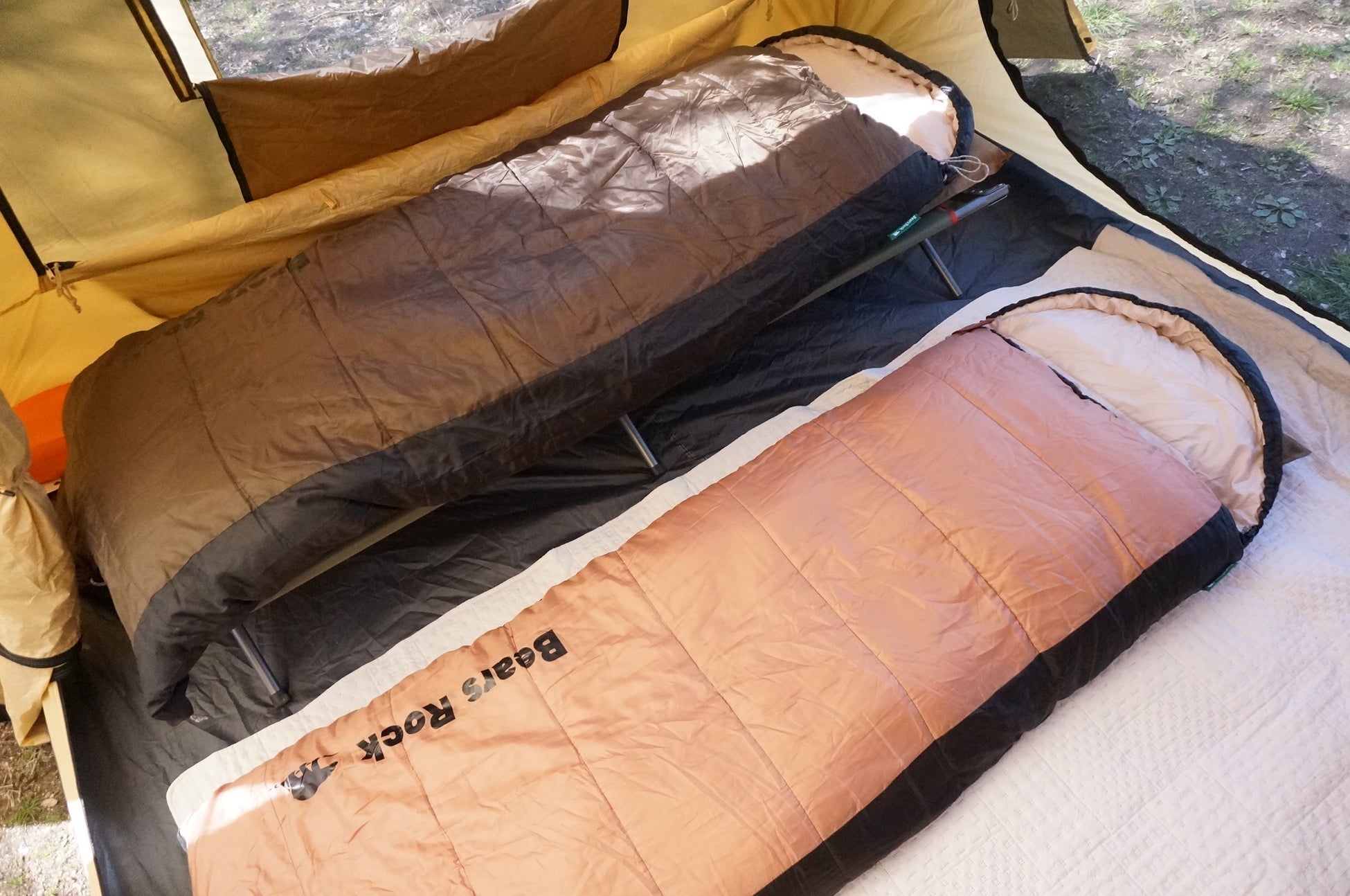 Bears Rockの寝袋は中綿がふんわりしていて厚みがあり、布団のようにふかふかとした寝心地になるように仕上げています。