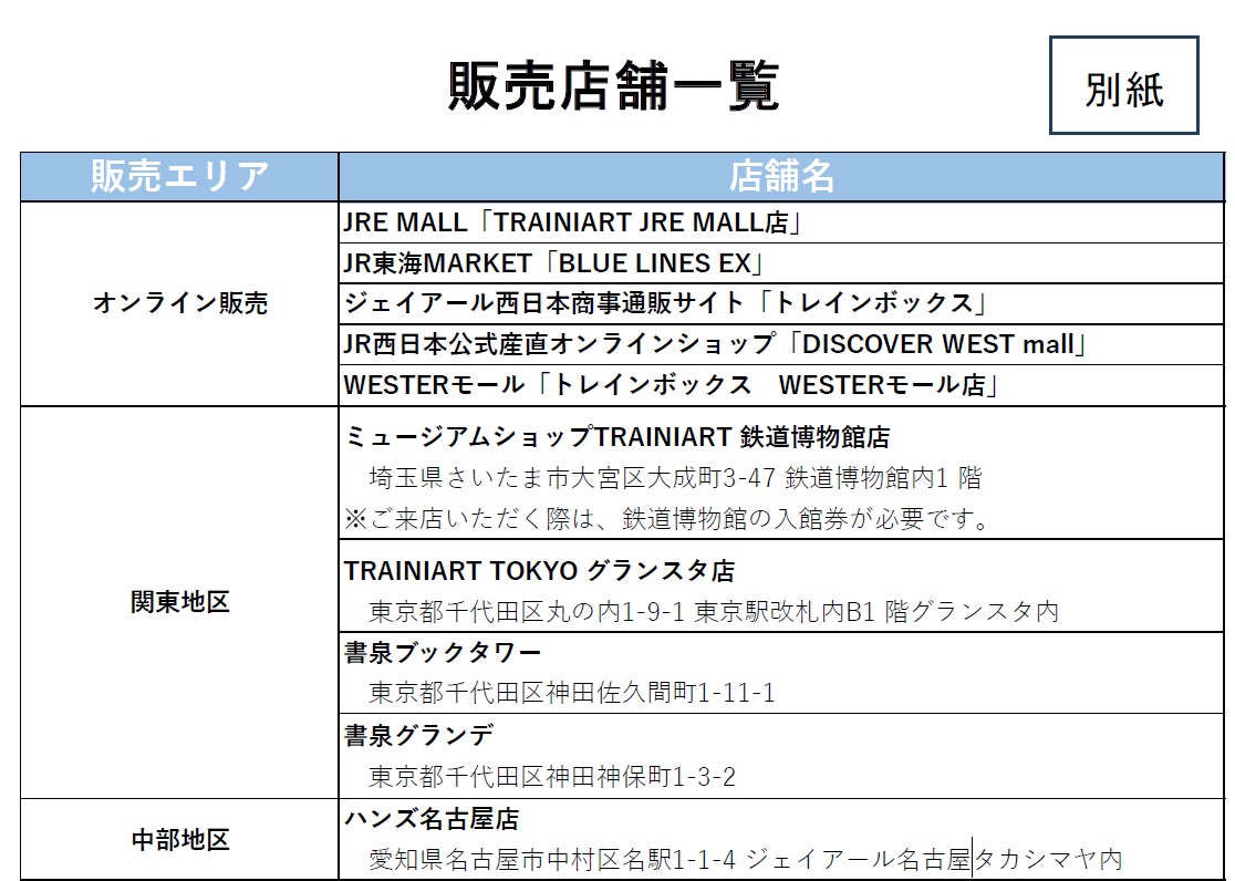 TRAINIART TOKYOグランスタ店 取扱店舗の詳細は別紙参照