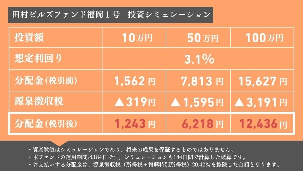 株式会社田村ビルズ(本社: 山口県山口市黒川 代表:河村英治)が提供する田村ビルズクラウドファンディングの不動産小口化商品「田村ビルズファンド福岡1号」を抽選式で6月27日(金)より募集開始いたします。本ファンドの投資対象は福岡県福岡市博多区中洲にある区分所有マンションです。対象不動産は弊社が区分所有し、安定した賃貸運営をしていますその賃料収入を配当資源として投資家の皆さまへ分配する予定です。