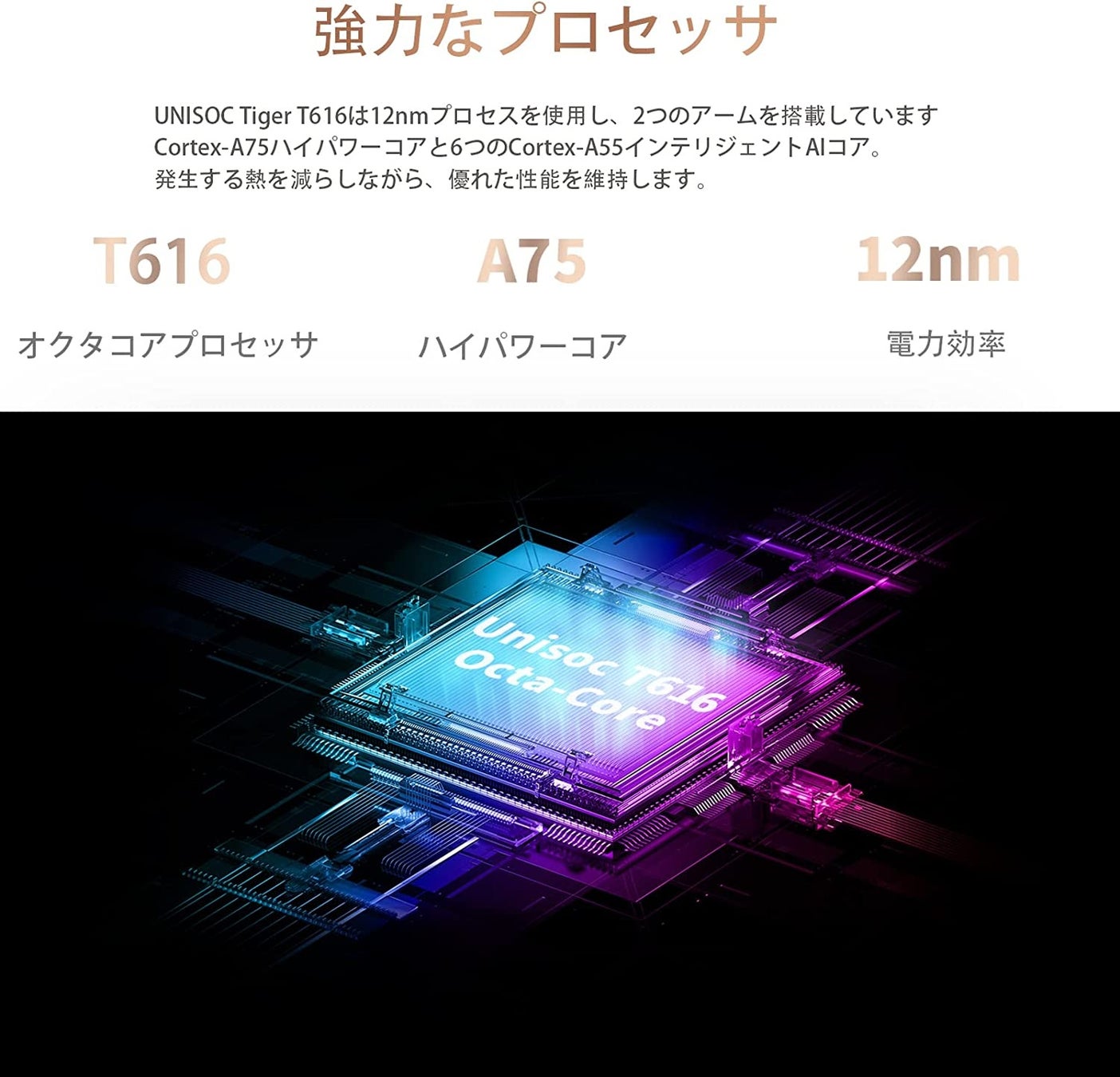 Teclast T40Pro タブレット は、UNISOC Tiger T616プロセッサを利用するために、2.0GHzの周波数と12nm低消費電力を備え、2つのArm Cortex-A75ハイパワーコアと6つのCortex-A55インテリジェントAIコアを搭載しています。 発熱を抑えながら優れた性能を維持できます。距離センサー、光センサーなどを搭載します。明るさ自動調整できます。ケースを利用すると、自動ロック/ロック解除も簡単に実現できます。より良いユーザー体験を提供します。