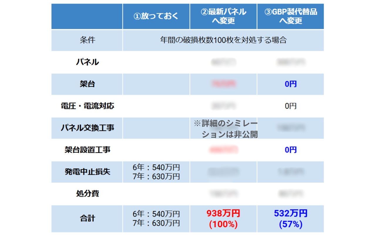 GBP、「100枚の破損パネルを交換する、対処法別シミレーション」を発表
