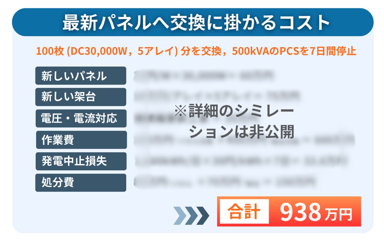 ▼▼▼旧型番太陽光パネルの代替品へ交換に掛かるコストをシミレーションしてみました。