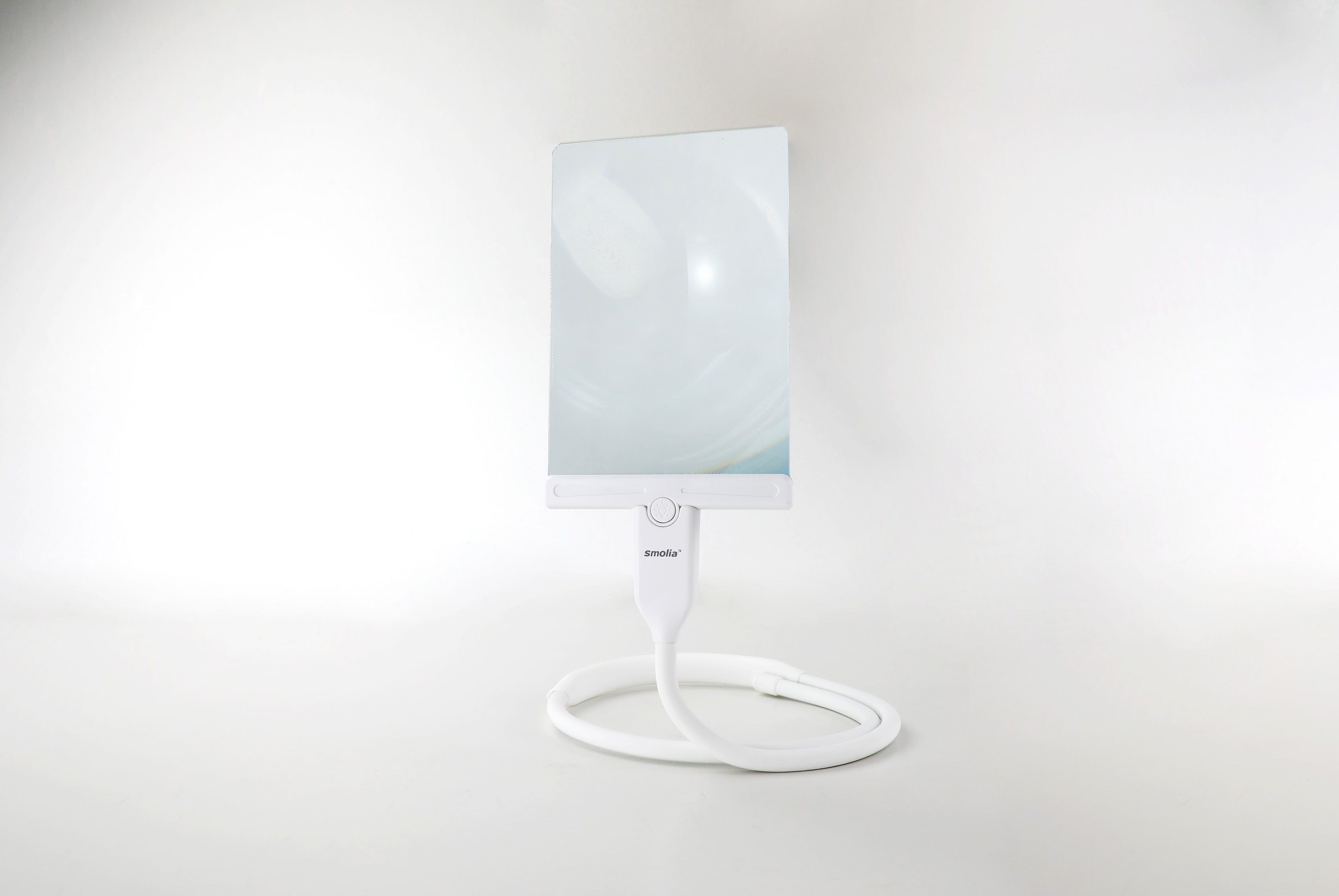 スモリアフリー3は、首にかけることで両手を自由に使える新型の拡大鏡です。この製品は、約1.8倍の拡大率を持つ、ゆがみの少ないレンズが特徴です。 球面レンズを使用しないため、ゆがみなく対象物を拡大し、細かい文字でもはっきりと読むことができます。老眼鏡と併用できるため、老眼鏡による日常的な遠近距離の視界と、それよりも更に近い距離や手元の小さい物を見るための視界をハンズフリーで簡単に得ることができます。そして、LEDライトが搭載されているため、暗い場所でも明るく見ることが可能です。また、フレームレスのデザインで、視界の妨げを最小限に抑え、軽量設計で長時間の使用でも快適です。使用スタイルは3種類あり、首掛け式・卓上スタンド式・手持ち式を自由に選んで使用可能です。