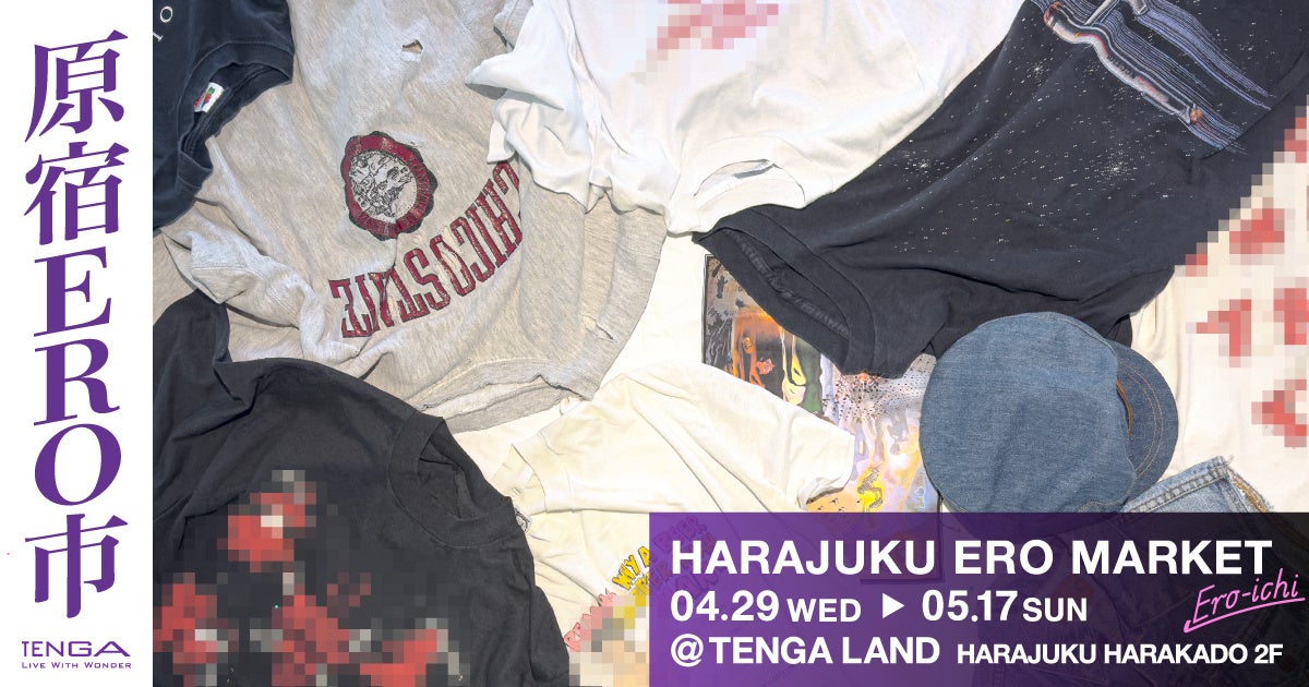 株式会社TENGA(東京都中央区/代表取締役社長 松本光一)は、アメリカ古着を取り揃えるヴィンテージショップ「STEP AHEAD」と共同で、“エロいはかっこいい”をテーマにセレクトした古着を販売する『原宿エロ市』を、TENGA LAND(東急プラザ原宿「ハラカド」)にて、4月29日(水)〜5月17日(日)の間※、開催いたします。本イベントでは、「露骨な表現」や「性的描写」とは異なる、「どこか惹かれてしまう色気や魅力=エロ」という感覚に着目。一部の人だけが「見えてしまう」「感じてしまう」違和感やニュアンスを、ファッションを通じて楽しむ、新しい視点の古着マーケットです。