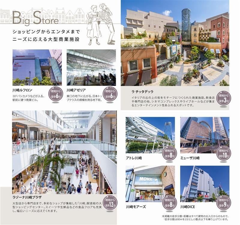 複数の商業施設が立ち並ぶ「川崎」駅。その中でも多くの人に愛され、エンターテイメント・カルチャー・ショッピング・グルメを楽しめる「チネチッタ通り」を抜けた先にある、穏やかで住み心地の良い居住区に佇むプレール・ドゥーク川崎Ⅳ。