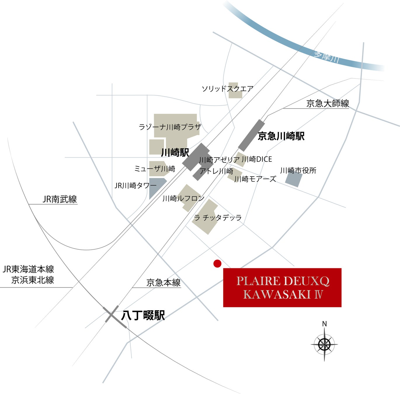 JR東海道本線・京浜東北線・南武線「川崎」駅徒歩9分 JR南武線、京急本線「八丁畷」駅徒歩9分 京急本線・大師線「京急川崎」駅徒歩11分 |