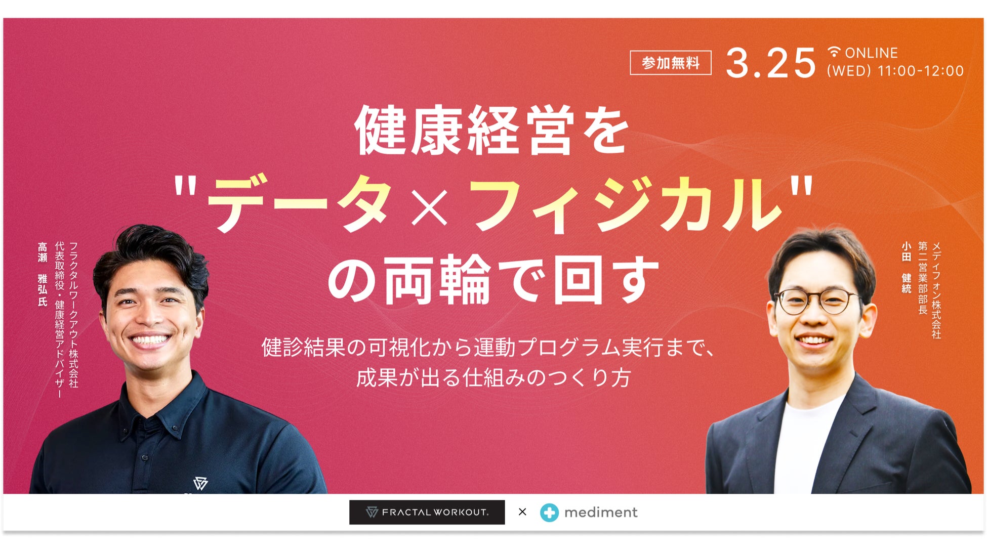 メディフォン株式会社×フラクタルワークアウト株式会社、「守りの健康管理」から「攻めの健康経営」へ転換する共催セミナーを開催いたします